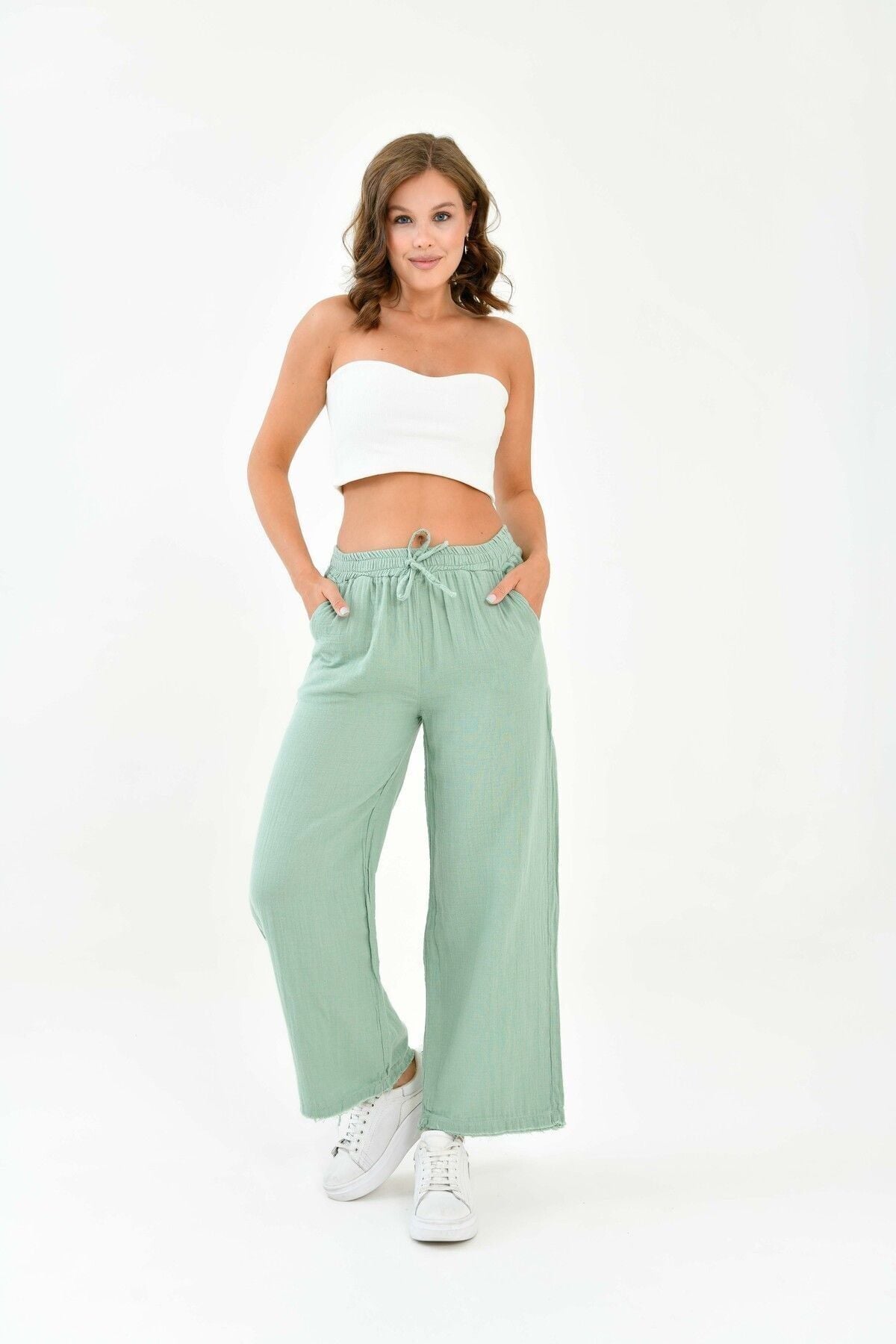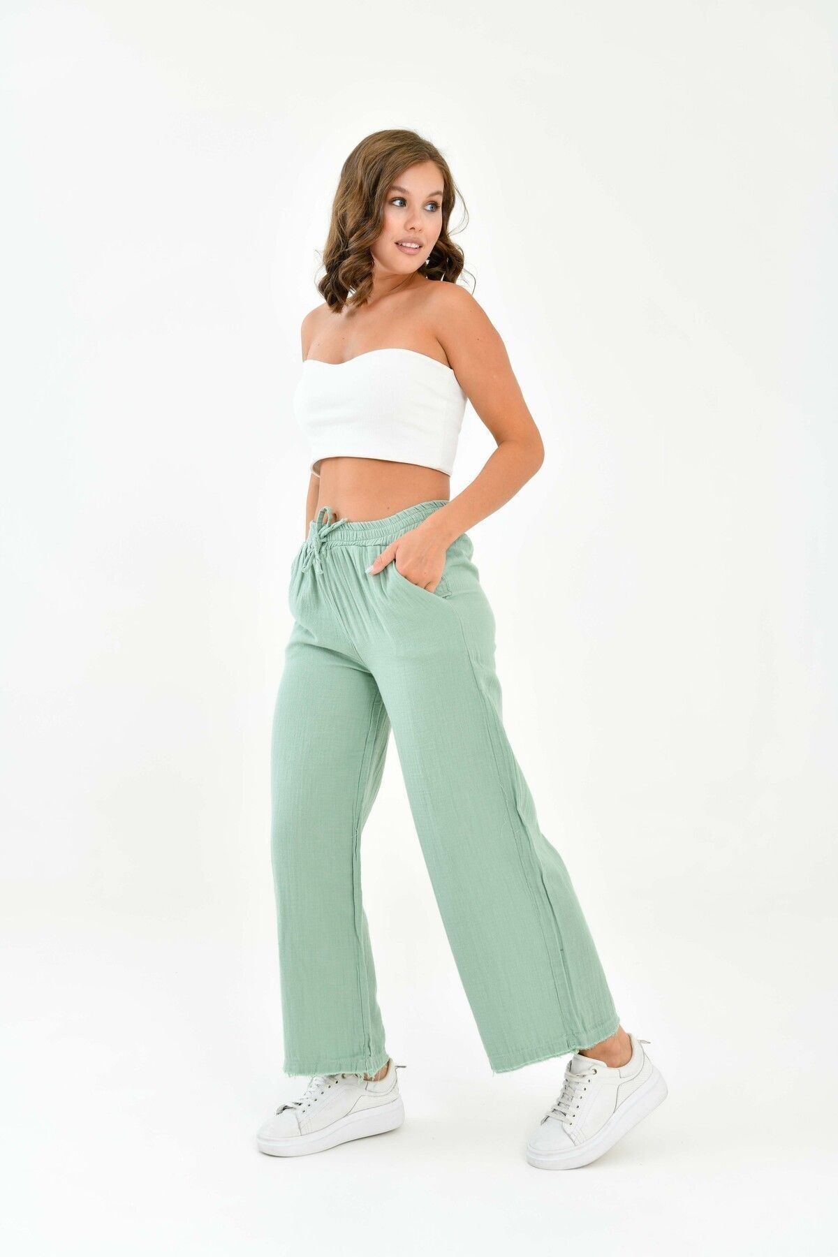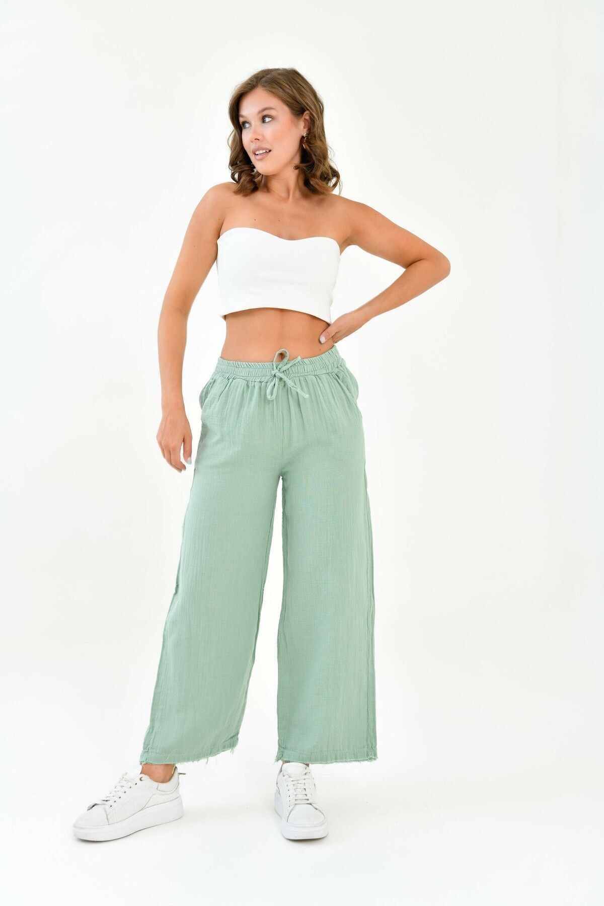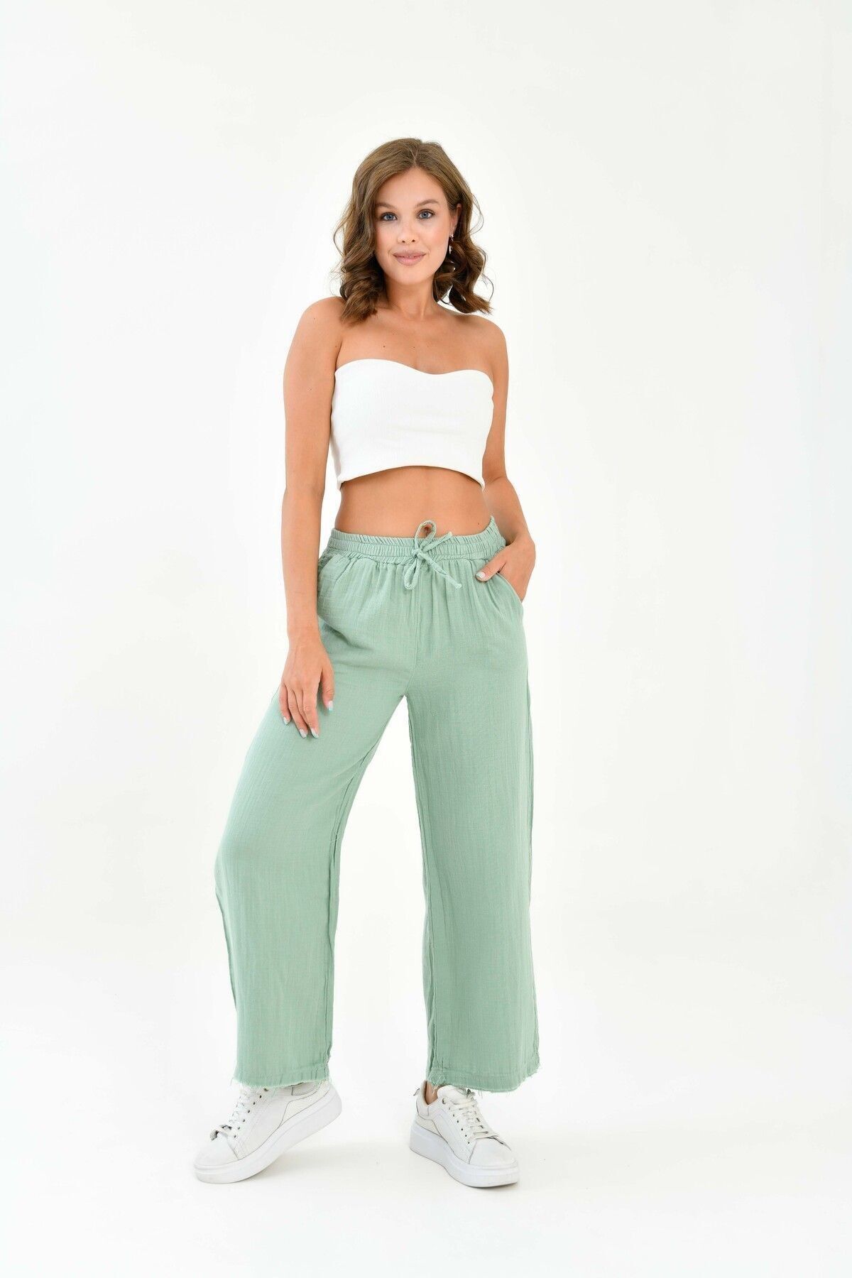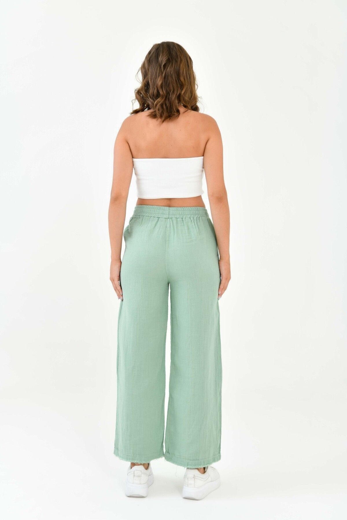 Beli lastikli tasarımı sayesinde rahat bir kullanım sağlar ve vücut hatlarınıza uyum sağlar; - Dokuma müslin kumaşı, hafif ve ince yapısıyla yaz aylarında serinlik hissi verir; - Günlük kullanıma uygun casual tasarımıyla her ortamda şıklığınızı korumanızı sağlar; - Regular boy ve kalıp seçenekleriyle farklı vücut tiplerine uyum sağlayarak rahat bir oturuş sunar; - Çift cepli yapısı küçük eşyalarınız için pratik saklama alanları sunar; - Düz deseni ve sade tasarımıyla zamansız bir görünüm elde edersiniz; her tür üst giyimle kolayca kombinlenebilir; - Basic koleksiyonun bir parçası olarak, gardırobunuzdaki temel parçalardan biri haline gelir.; - %100 pamuk kullanımı sayesinde sürdürülebilir moda anlayışına katkıda bulunurken doğaya saygılı bir tercih yapmış olursunuz;