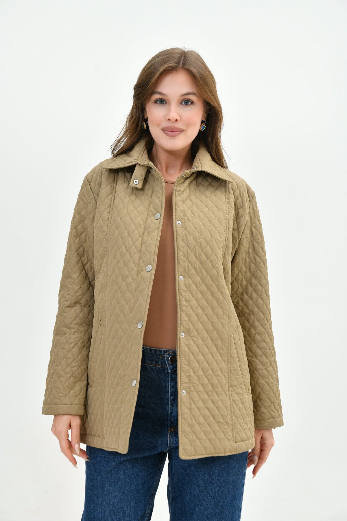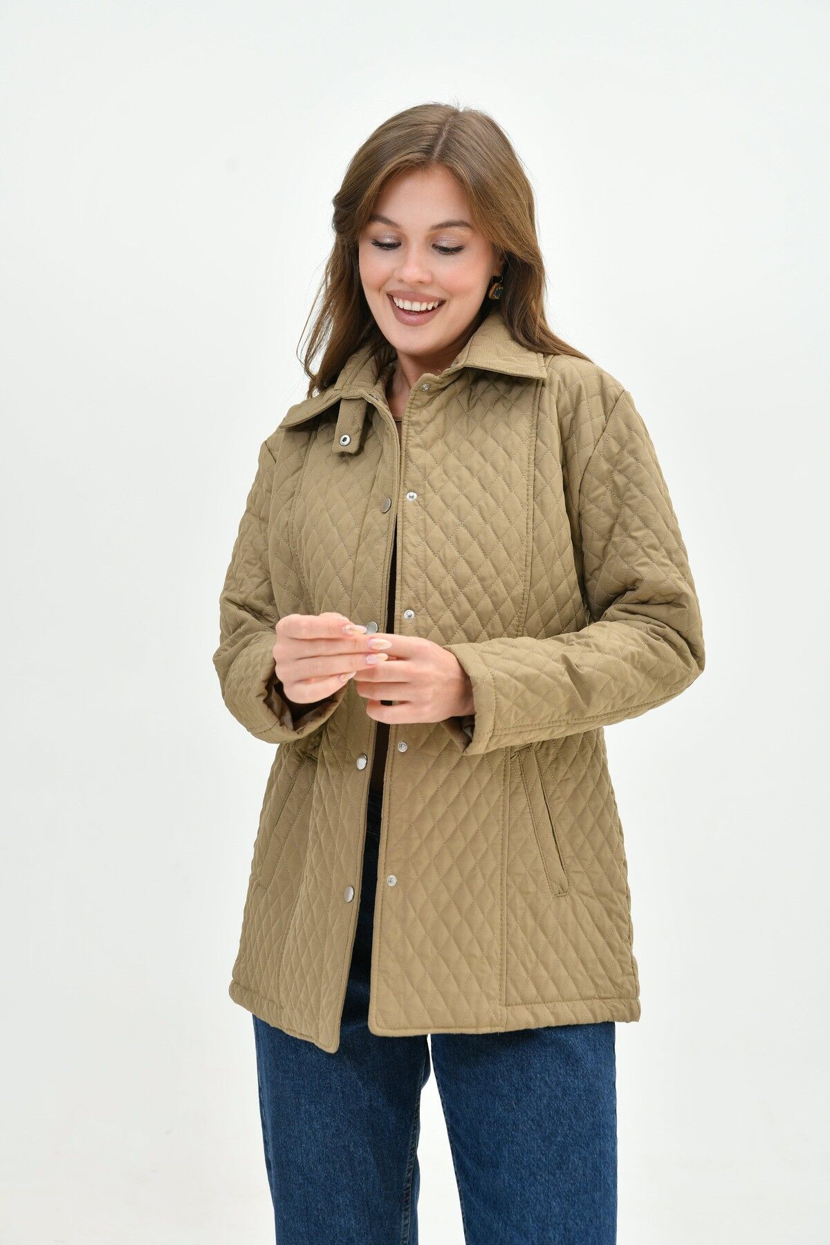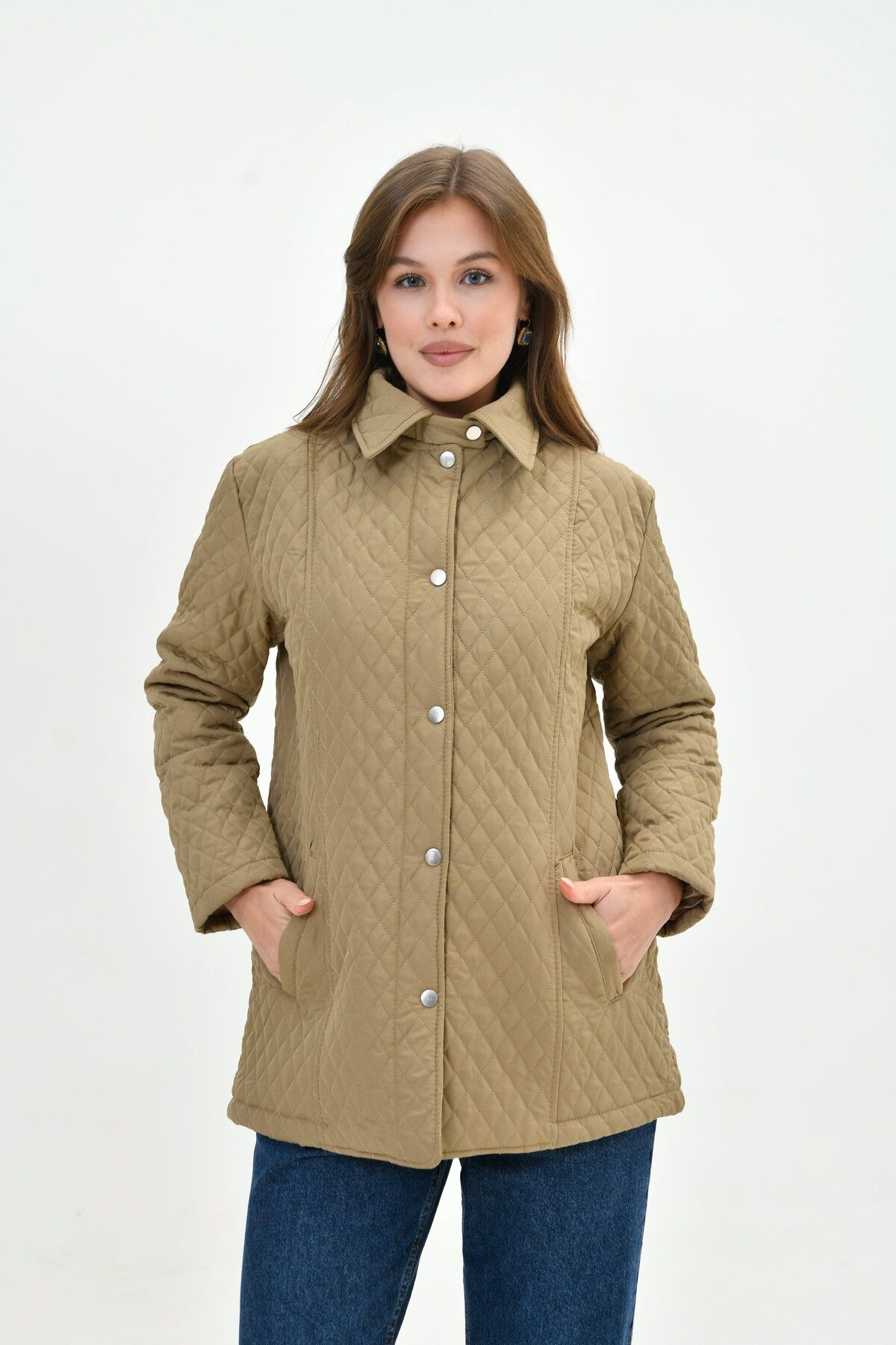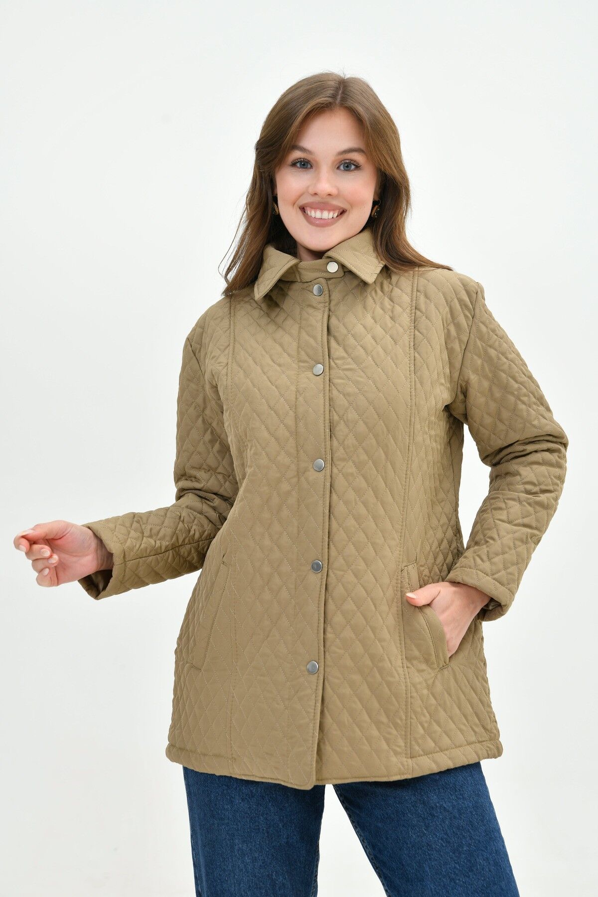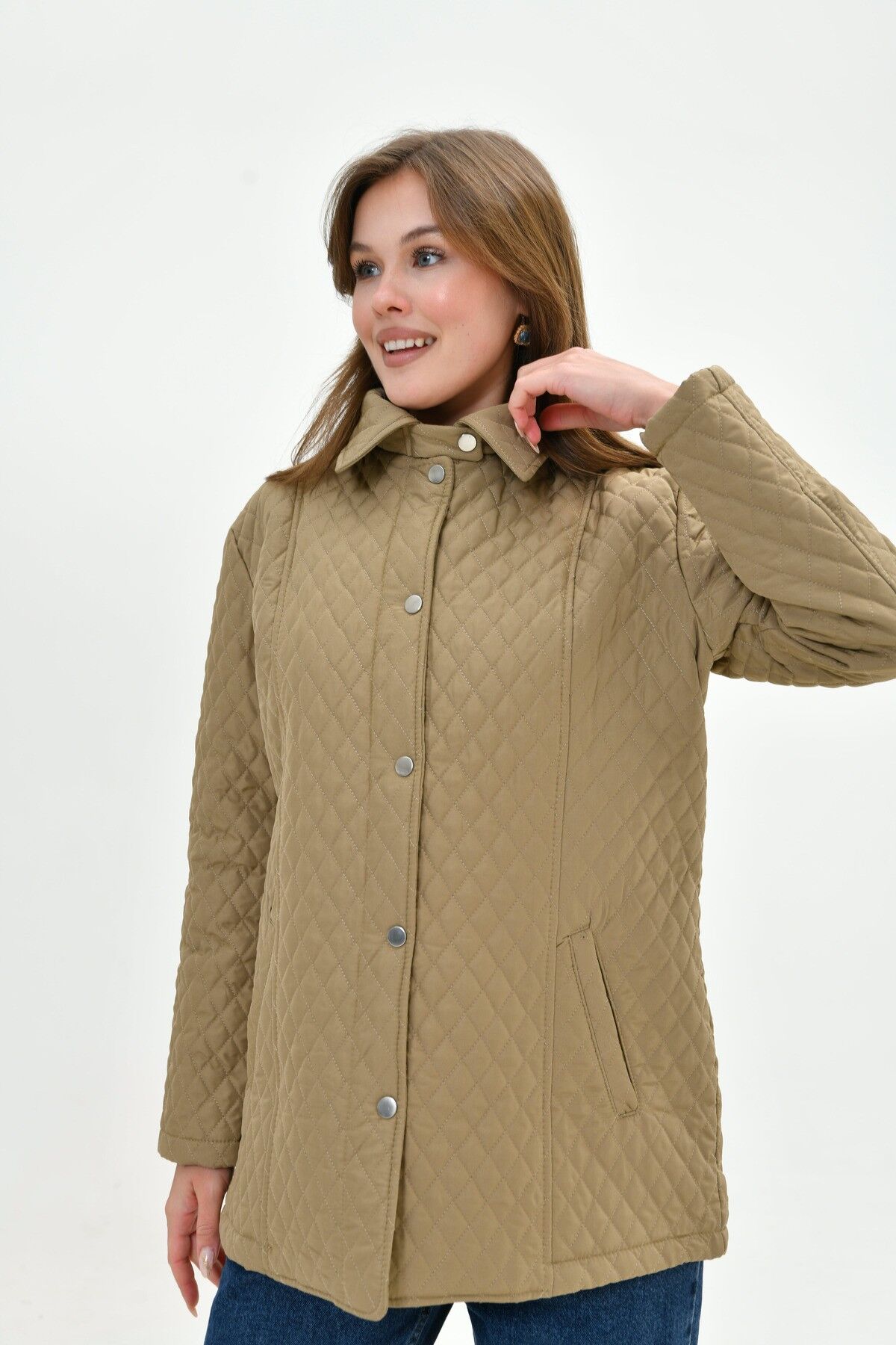 Kadın Büyük Beden Çıtçıtlı İçi Astarlı Kapitone Kaban Mont
