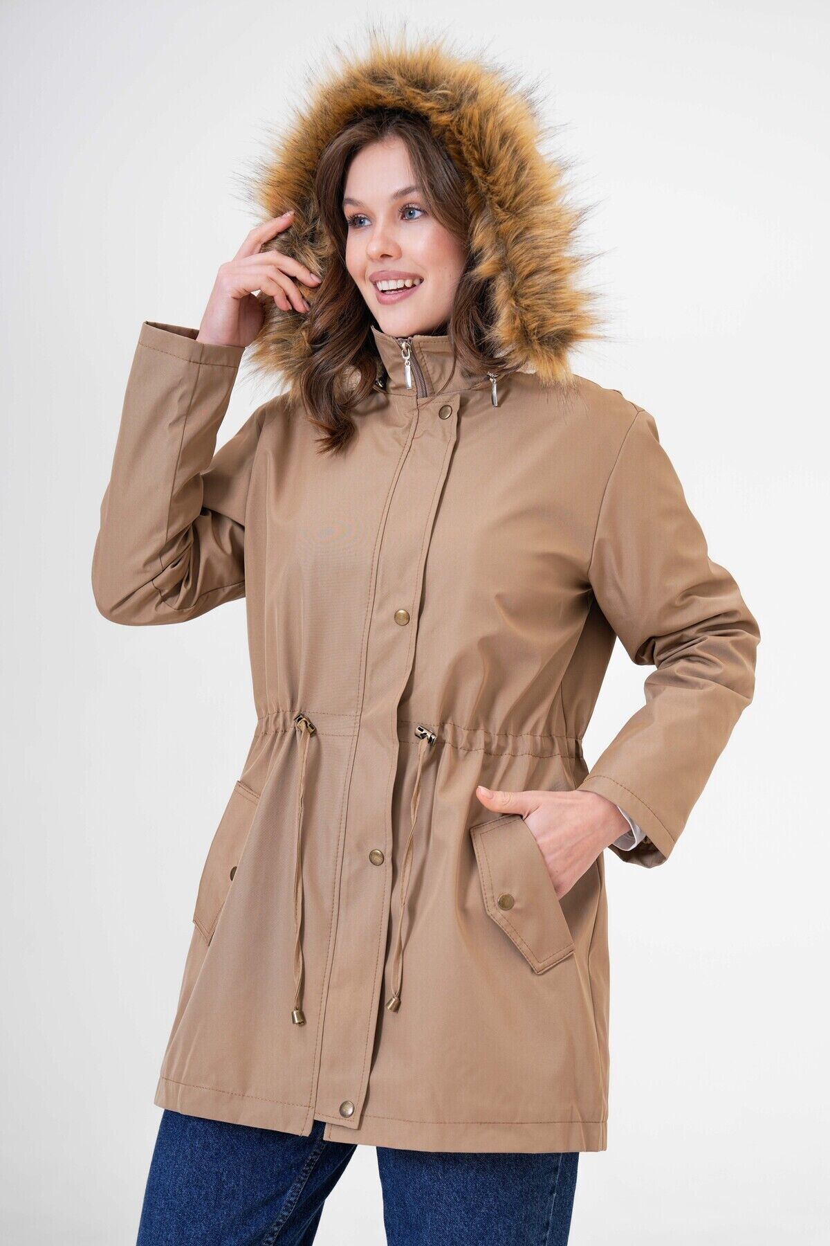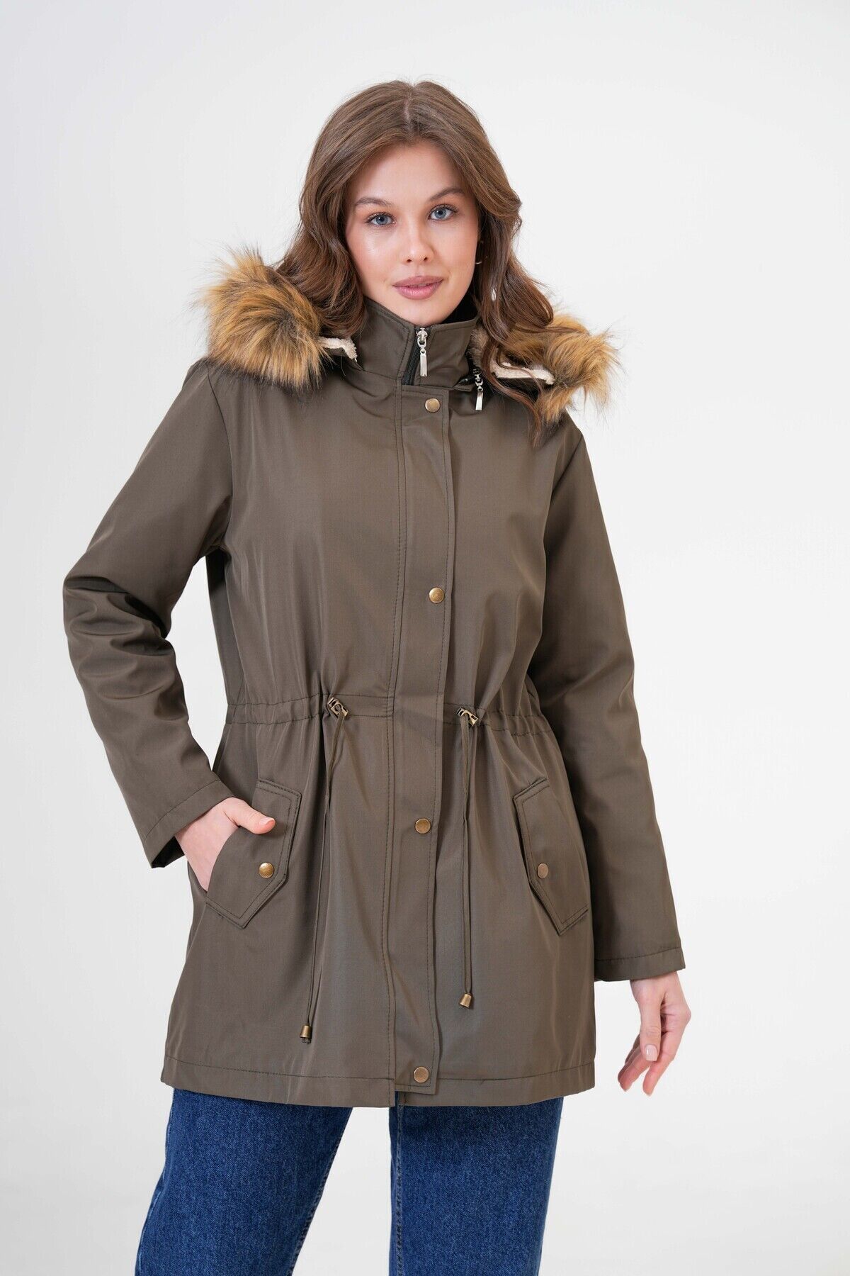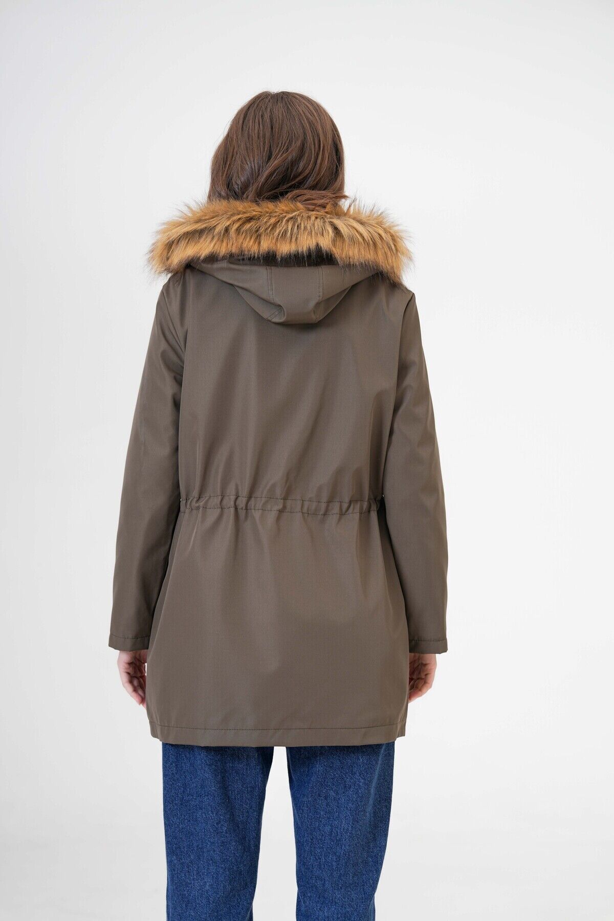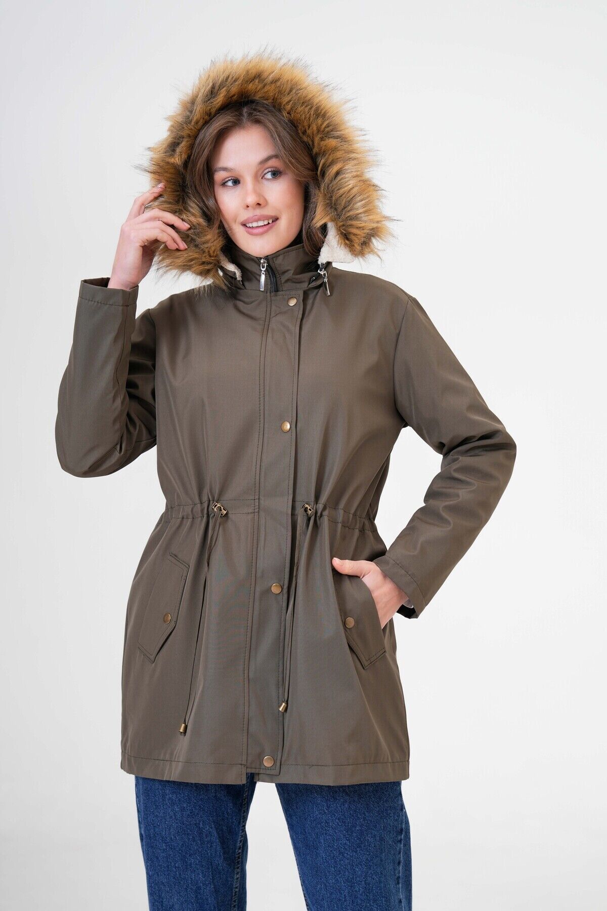 - Su itici özelliği ile yağmurlu havalarda bile konforlu bir kullanım sunar.; - İç kısmındaki kürk detayları, soğuk günlerde ekstra sıcaklık sağlar.; - Beli büzgülü tasarımı sayesinde vücut hatlarınıza uyum sağlayarak şık bir görünüm kazandırır.; - Kapüşonlu yapısı ile başınızı ve boynunuzu rüzgar ve yağıştan korur.; - Çift cepli tasarım pratik eşyalarınız için kolay erişim imkanı tanır.; - Çıtçıtlı kapama mekanizması hızlı ve güvenli bir şekilde giyilip çıkarılmasını mümkün kılar.; - Kalın yapısıyla kış aylarında üstün ısı yalıtımı sunarken, haki rengiyle zamansız bir stil oluşturur.; - Cool & comfort persona'sına sahip bu mont, günlük kullanımda rahatlıkla tercih edilebilir.; - Baskısız düz deseniyle sade ve zarif bir görünüm sergilerken, her türlü kombinle uyum içindedir.; - Uzun kollu tasarım soğuktan tam koruma sağlarken, peluş dokusu yumuşaklık hissi verir.; - Düz kesimiyle sadelikten yana olanların tercihi olacak şekilde dizayn edilmiştir.