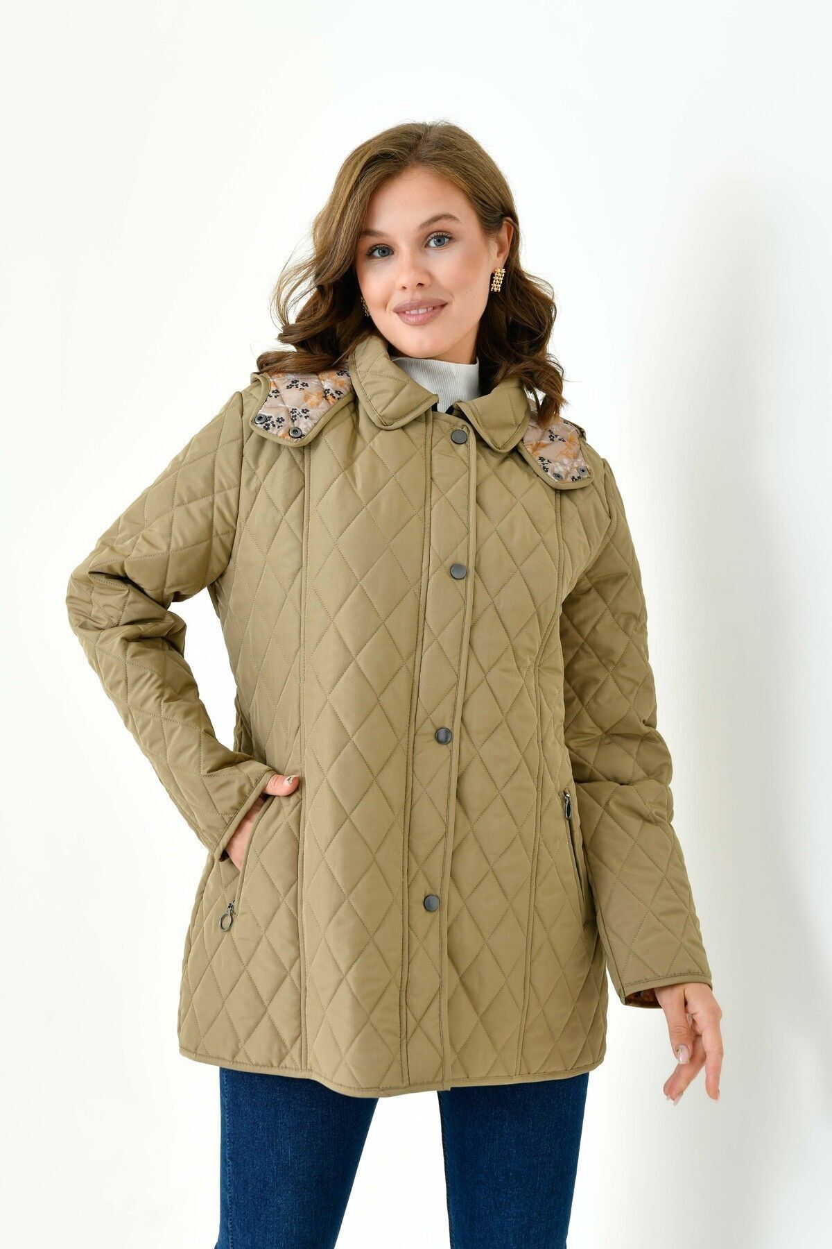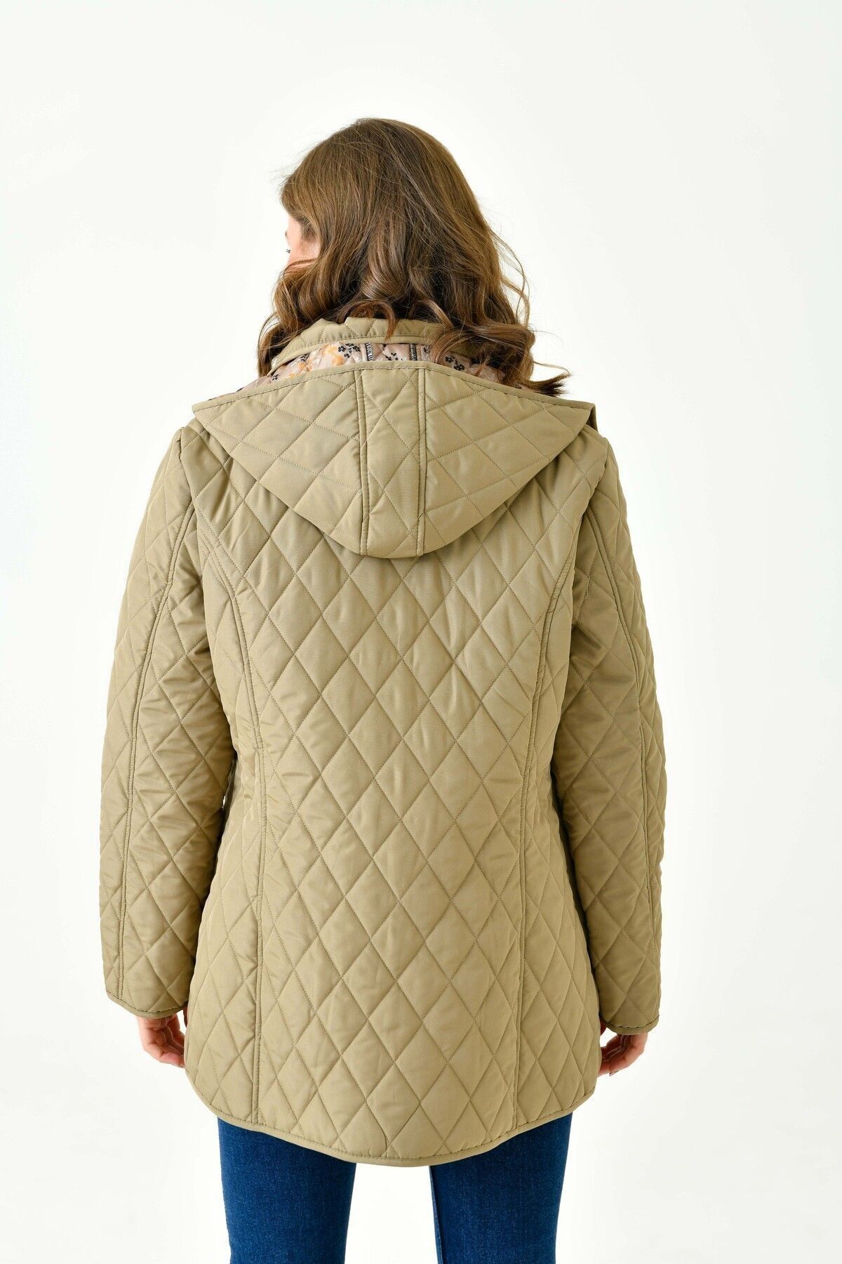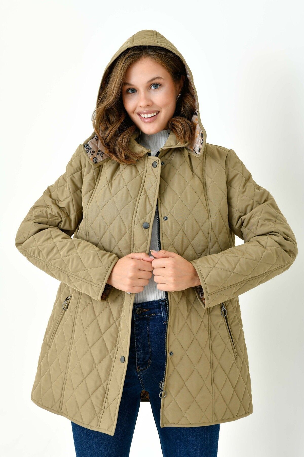 Kadın Büyük Beden Kapüşonlu İçi Desenli Fermuarlı Çıtçıtlı Kapitone Kaban Mont