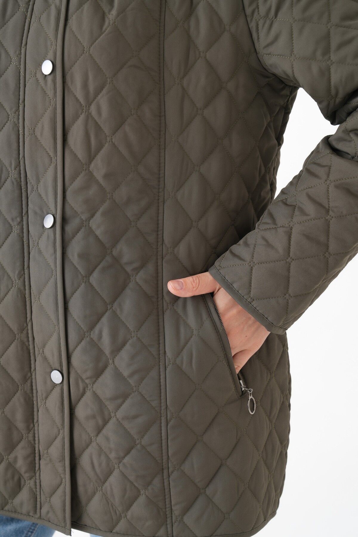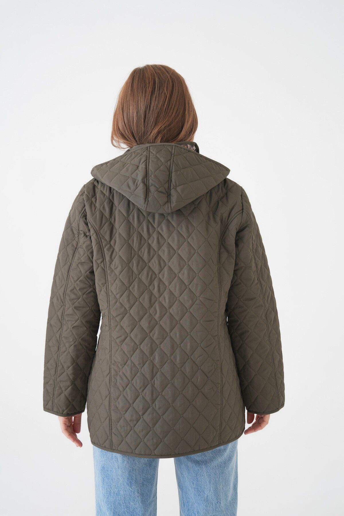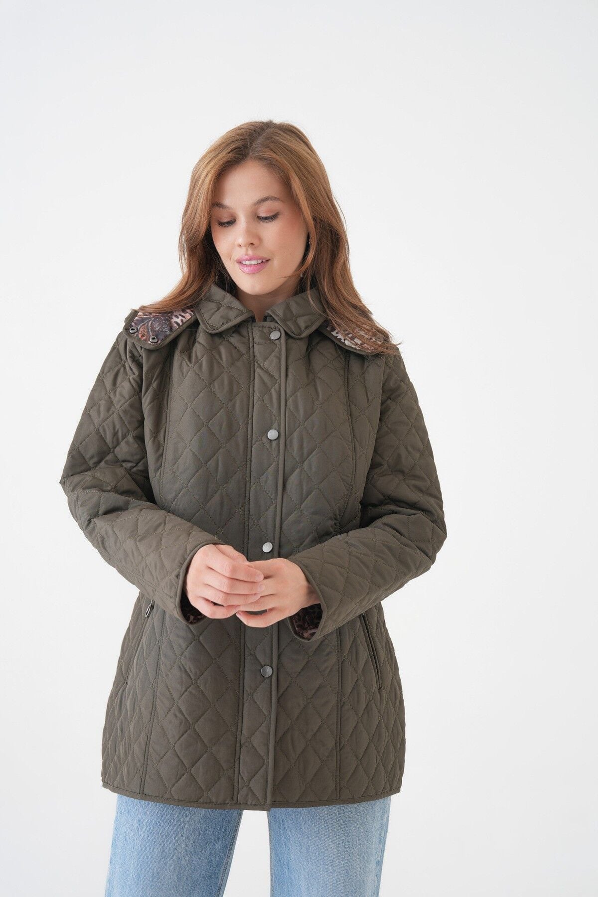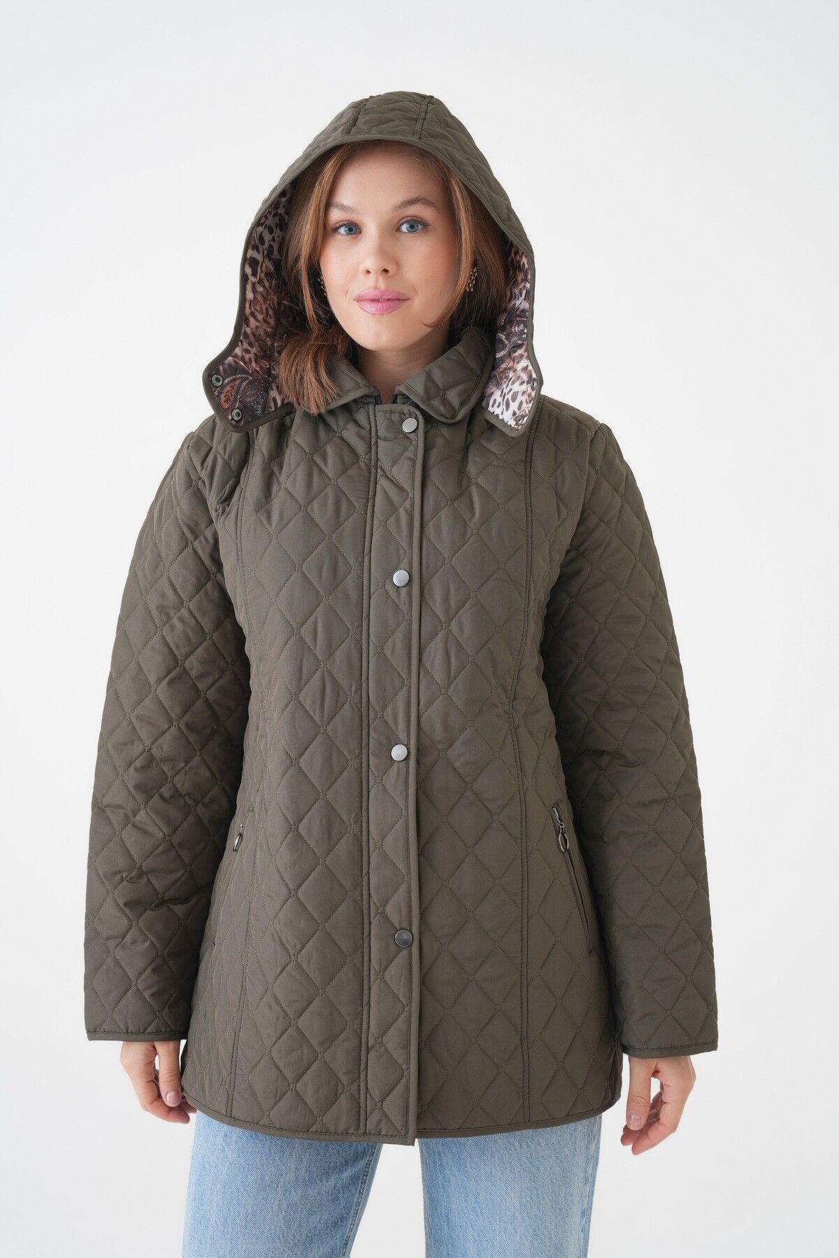 Kadın Büyük Beden Kapüşonlu Leopar Desenli Fermuarlı Çıtçıtlı Kapitone Kaban Mont