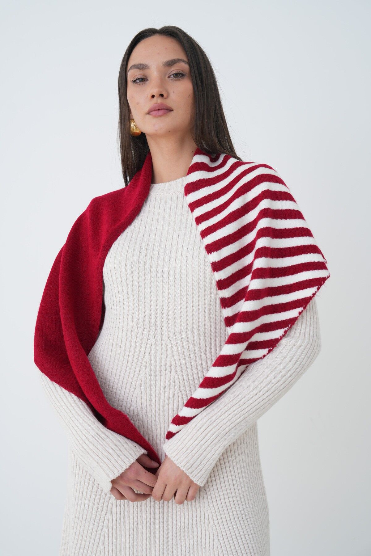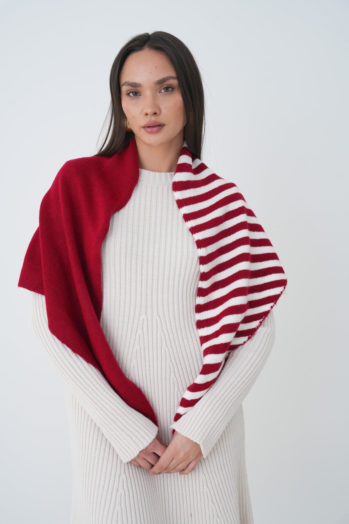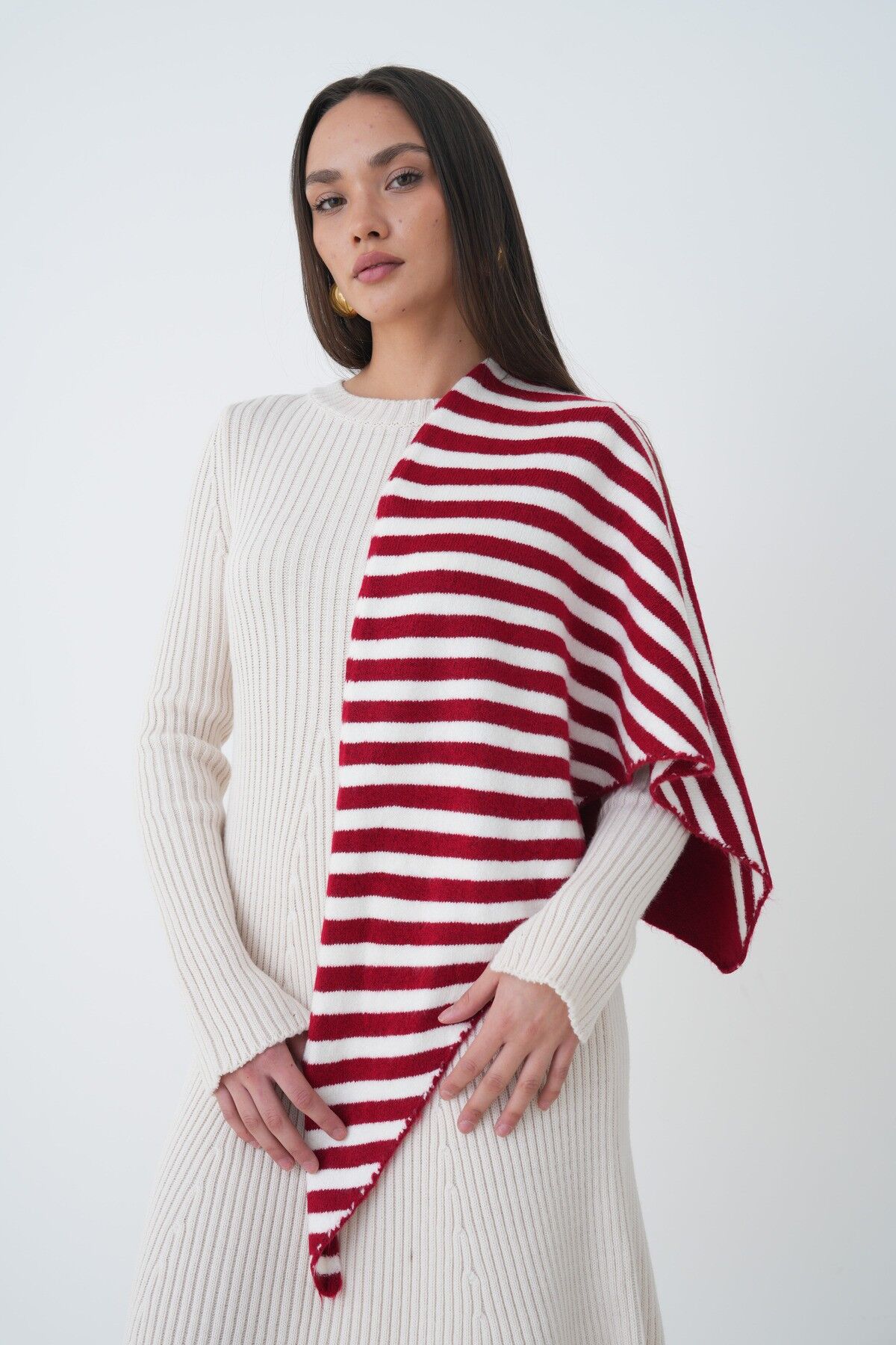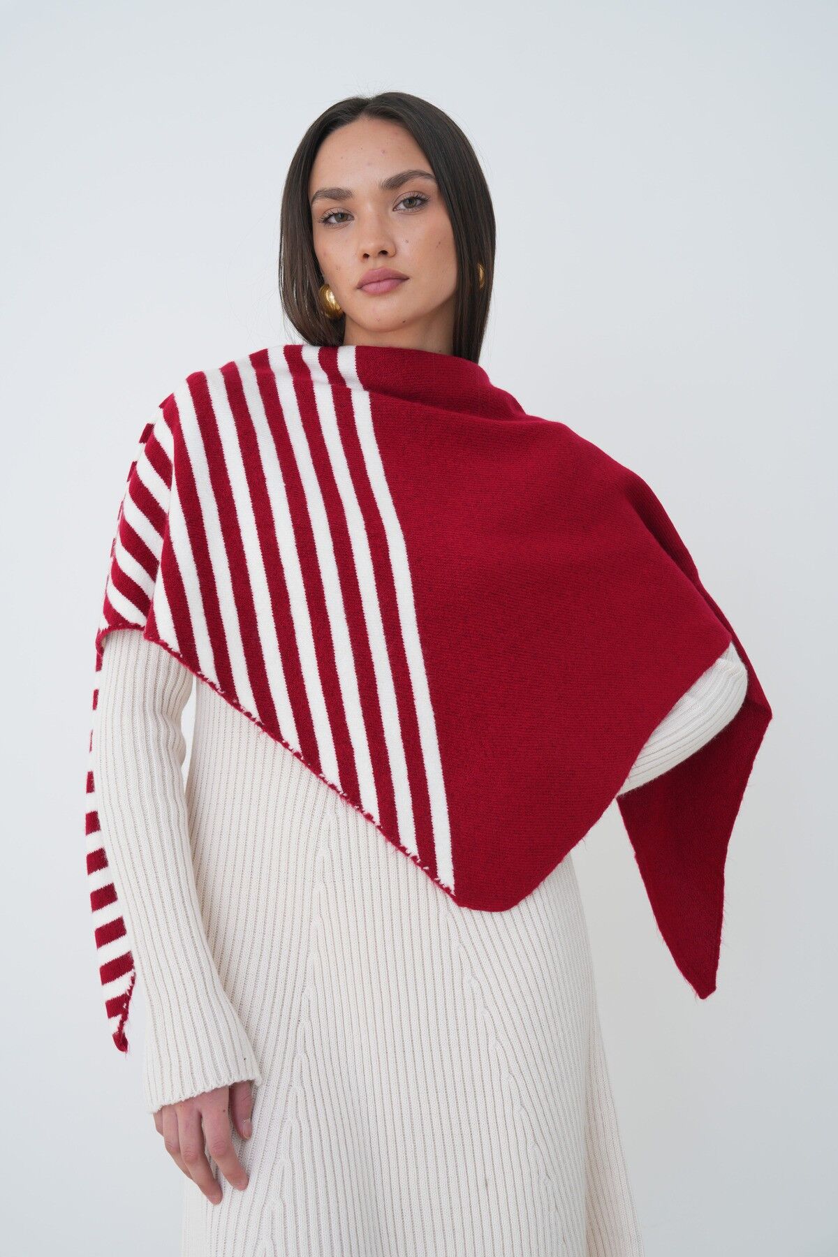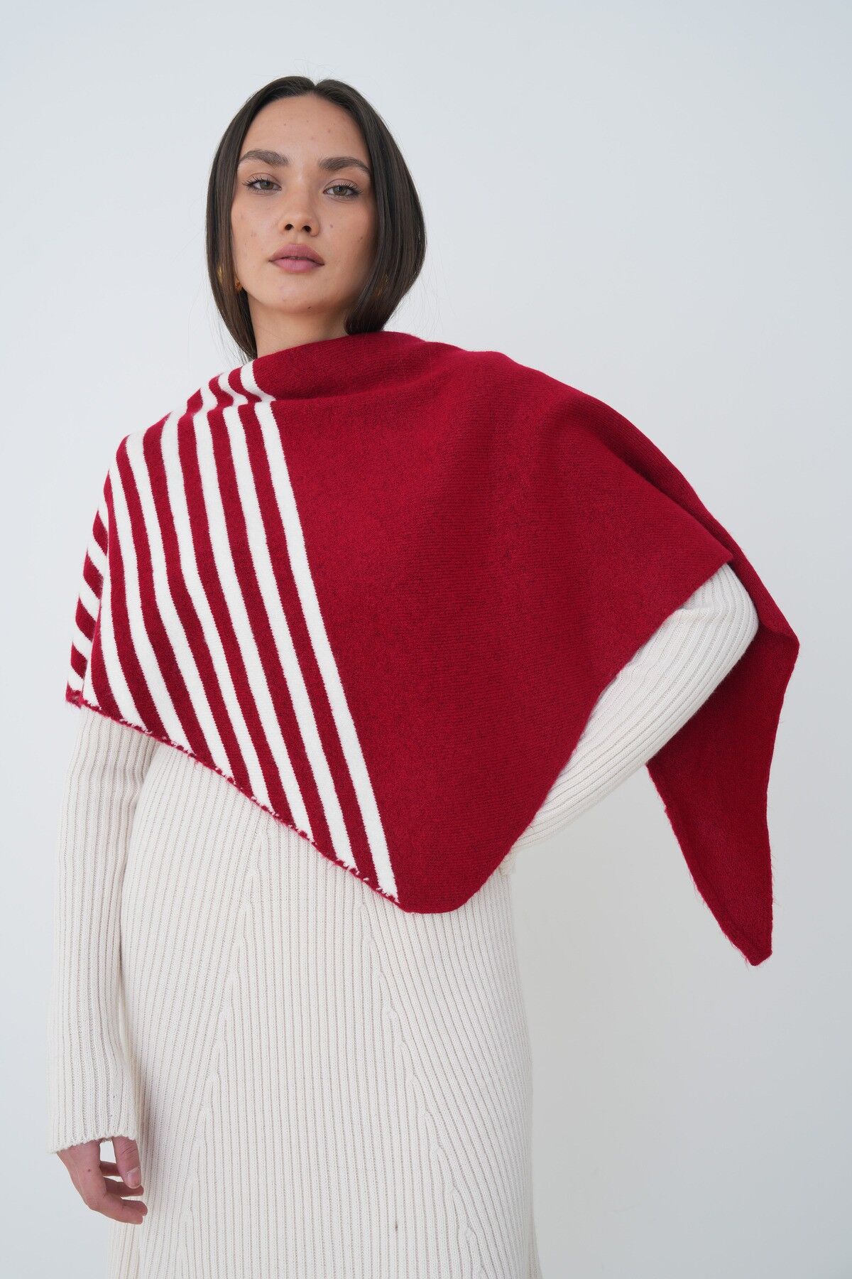 Neden Bu Şalı Seçmelisin? Omuz şalı olarak tasarlanmış bu ürün, mevsim geçişlerinde ve kışın çok sıcak olmayan iç mekanlarında mükemmel bir tercih. Çizgili deseni, en basit outfitleri bile sofistike hale getirirken, üçgen kesimi sana maksimum esneklik sağlıyor—ister omzuna at, ister başına sar, ister boynuna dolaşsın. Konforlu yapısı sayesinde bütün gün rahat kalabilirsin ve hiç ağırlık hissetmezsin.