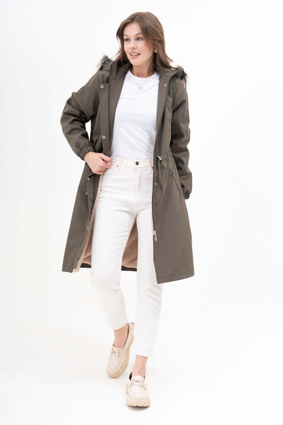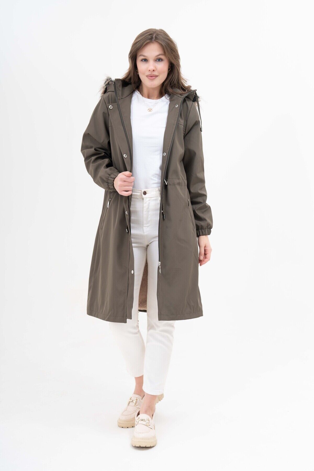 - Su itici özelliği sayesinde yağmurda veya karlı havada dahi kuru kalmanızı destekler.; - Büyük beden tasarımı, rahat hareket etme özgürlüğü sunar ve her vücut tipine uyum sağlar.; - Kapüşonlu üst kısmı sayesinde başınızı soğuktan korurken şık bir görünüm kazandırır.; - Uzun boy kesimi ile hem sıcak tutar hem de modern bir stil oluşturur.; - Çift cepli tasarım pratik kullanım imkanı sunarken eşyalarınız için güvenli saklama alanları sağlar.; - Peluş detayları ile yumuşak dokunuşu hissedilir ve konforlu bir deneyim yaşatır.; - Kalın yapısıyla soğuk günlerde ekstra ısı yalıtımı sunarak sizi sıcak tutar.; - Haki rengiyle doğal tonların zarafetini yansıtır ve kolayca kombinlenebilir.; - Cool & comfort persona'ya hitap eden bu mont, günlük kullanım için idealdir; hem rahatlık hem de tarz arayanlar için uygundur.; - Kapüşonlu yaka tipi baş ve boyun bölgesini koruyarak soğuktan tam anlamıyla korur.; - Her yaş grubuna hitap eden geniş kullanıcı kitlesi düşünülerek tasarlanmıştır.; - Büyük beden koleksiyonuna özel olarak üretilmiştir; her bedene uygunluk gösterir.; - Basic siluetiyle zamansız parçalar arasında yer alır; her gardrobun temel öğesi haline gelir.